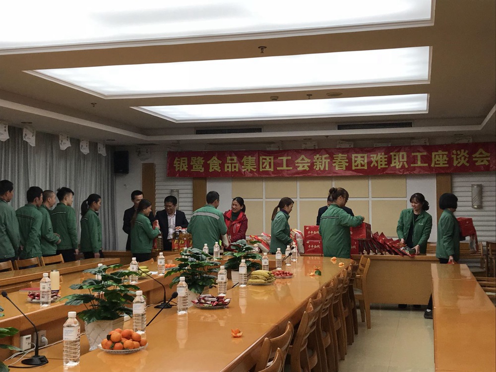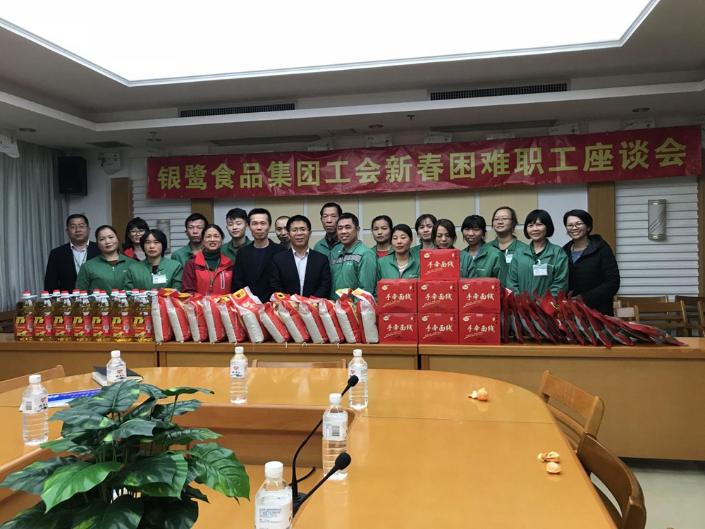 2019年1月28日(農歷十二月廿三,俗稱小年)下午,在這特別的日子,銀鷺食品集團工會在廈門生產基地開展迎新春“送溫暖下基層”慰問活動。集團工會主席洪清耀、工會副主席黃海英、廈門基地總廠長肖小榮及有關分廠廠長參加慰問活動。在基地科技樓三樓會議室,集團工會代表和基地有關部門領導與來自生產一線的13名困難職工代表親切交流,實際了解他們的工作、子女教育以及家庭生活情況,并為他們送上新春最美好的祝福和油米等日常生活必需品及慰問金,讓他們切身感受銀鷺大家庭的溫暖。