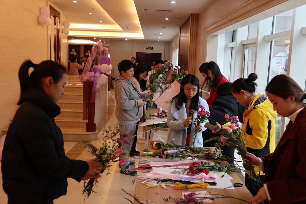 “小姐姐的花”現場熱烈而溫馨,女員工們把對美的理解和對生活的美好向往灌注到插花過程中,化身為插花高手,聯手奉獻上一場“美麗對決”。各色康乃馨、洋桔梗、玫瑰,在她們修剪、組合中變得更加動人。