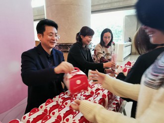 隨后,陳董、孫總等公司領導為女職工發(fā)放鮮花和小禮物,表達節(jié)日最美好的祝福。接到禮物的每位女員工笑顏如花,在鏡頭前留下了她們最燦爛的笑容,歡樂和溫馨彌漫在整個現(xiàn)場。