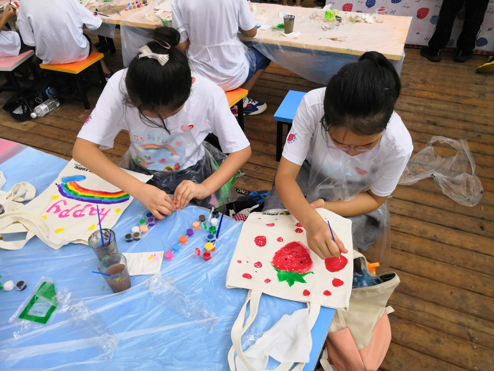 接著小朋友們參觀了超級(jí)植物工廠,這里是以傳統(tǒng)農(nóng)業(yè)、現(xiàn)代農(nóng)業(yè)和未來(lái)農(nóng)業(yè)核心內(nèi)容貫穿,以植物育苗工場(chǎng)作為種植展示的起點(diǎn),展示了以智慧中樞管理的農(nóng)業(yè)生產(chǎn)展示和高科技農(nóng)業(yè)種植。小朋友們?cè)谶@里一步步解鎖現(xiàn)代農(nóng)業(yè)技術(shù)的奧秘,了解了植物組織栽培、無(wú)土栽培、立體栽培、魚(yú)菜共生系統(tǒng)等現(xiàn)代技術(shù)為創(chuàng)造綠色生命提供了更多可能性。也了解了現(xiàn)代農(nóng)業(yè)耕種為我們的餐桌安全提供了堅(jiān)實(shí)的保障。在超級(jí)植物工廠里,一組小朋友們采摘蔬菜喂養(yǎng)了魚(yú)菜共生系統(tǒng)里的魚(yú),他們一個(gè)個(gè)興高采烈喂的不亦樂(lè)乎。另一組小朋友正在超級(jí)工廠里“埋頭苦干”原來(lái)他們一個(gè)個(gè)化身為“小畫(huà)家”正在手繪帆布包、彩繪綠植組盆,看他們一個(gè)個(gè)多認(rèn)真呀!