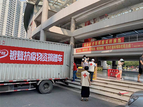 圖為銀鷺捐贈產(chǎn)品送達社區(qū)防控點